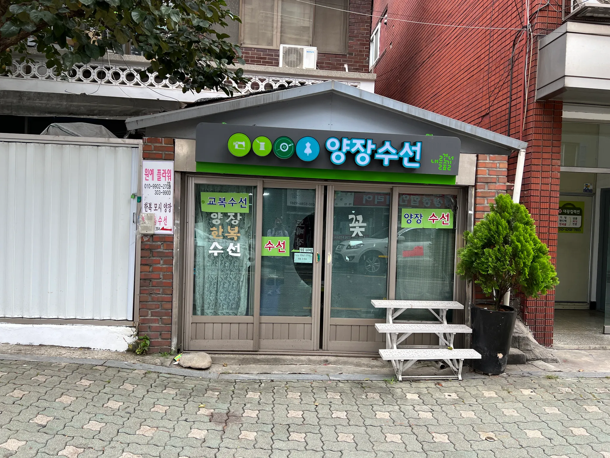 1.새절역에서 내숲도서관을 지나 봉산으로 향하는 길에는 ‘내를건너숲길’ 이라는 이름이 붙어있다. 도서관의 로고와 닮은 간판이 줄지어선 가게들 사이에서 오래된 단독주택의 한켠을 차지한 수선집과, 그 옆의 간이 포장마차의 붕어빵집의 정겨운 풍경. (a3그림)
