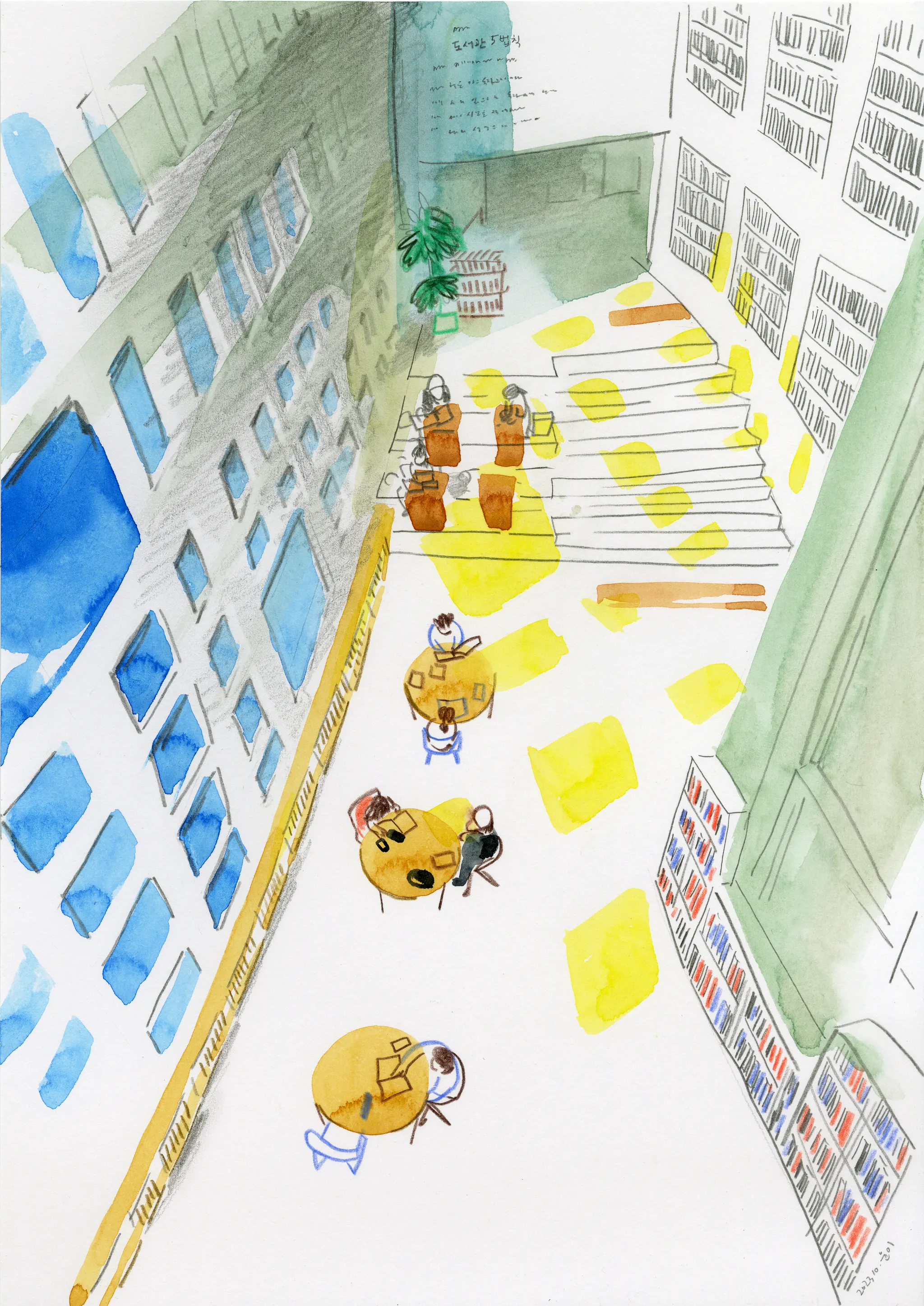 번외편 구산동 도서관마을. 구산동 도서관전시를 위해 따로 그린 그림입니다. (a4 2장)