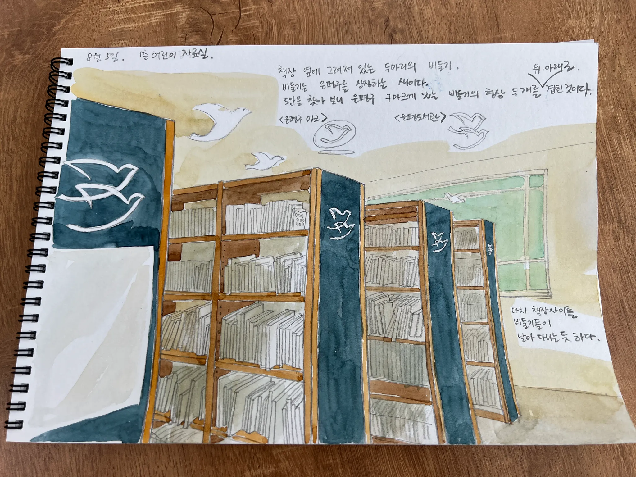 난 여지껏 이토록 나의 작품에 대해 긴 글을 써 본적이 없다. 왜 그리게 되었는지, 내가 본 것이 무엇인지 등에 대해 짧은 메모는 했을지 모른다. 이러한 과정이 내게는 두어달의 경험을 일기로 쓰는 기분이 들었다. 나름 긴 과정이였지만 사이사이 또 아쉬움이 보이고 금방 지나가버린 탐방처럼 느껴졌다. 비록 글과 그림들이 이렇게 마무리되지만 나는 또 도서관에 갈 것이고 다른 기록의 가치들을 찾아 볼 것이다.