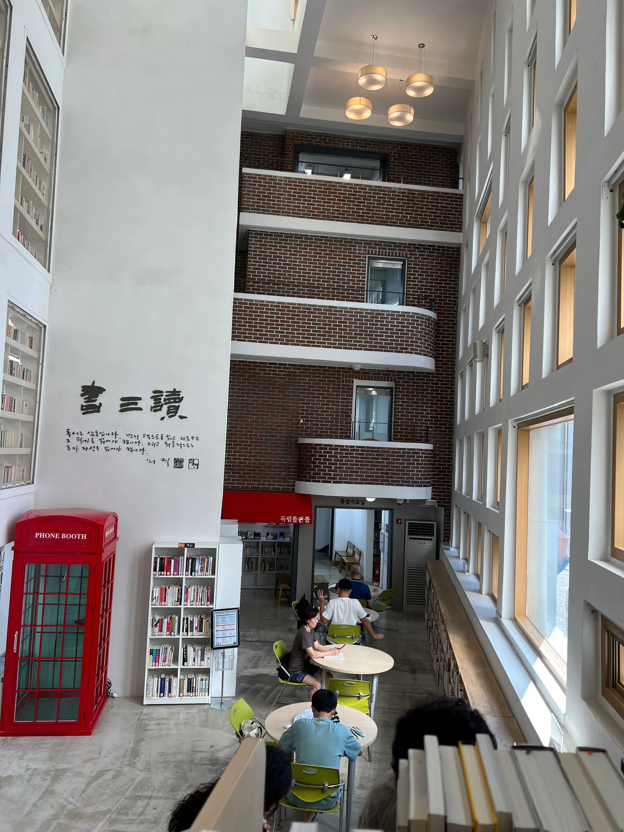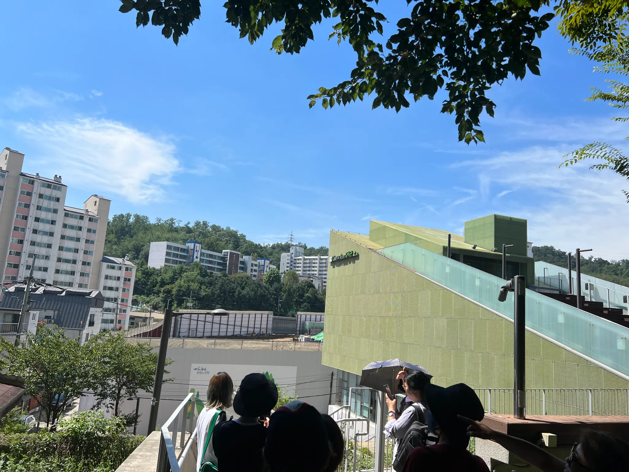 2.판데믹 기간동안 조용했던 내숲 도서관의 옥상 공연장에서 음악회가 열린 날, 종일 보슬비가 내렸다. 빗 속에서도 미리 예약하고 찾아온 관람객들이 우비를 입고 앉아 시낭송과 음악을 들으며 열기로 가득했다. 도서관 맞은편으로는 재개발 공사가 한창이다. (a3그림)