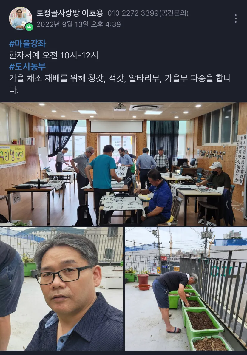 텃밭상자 가꾸는 모습 (밴드사진 참고)