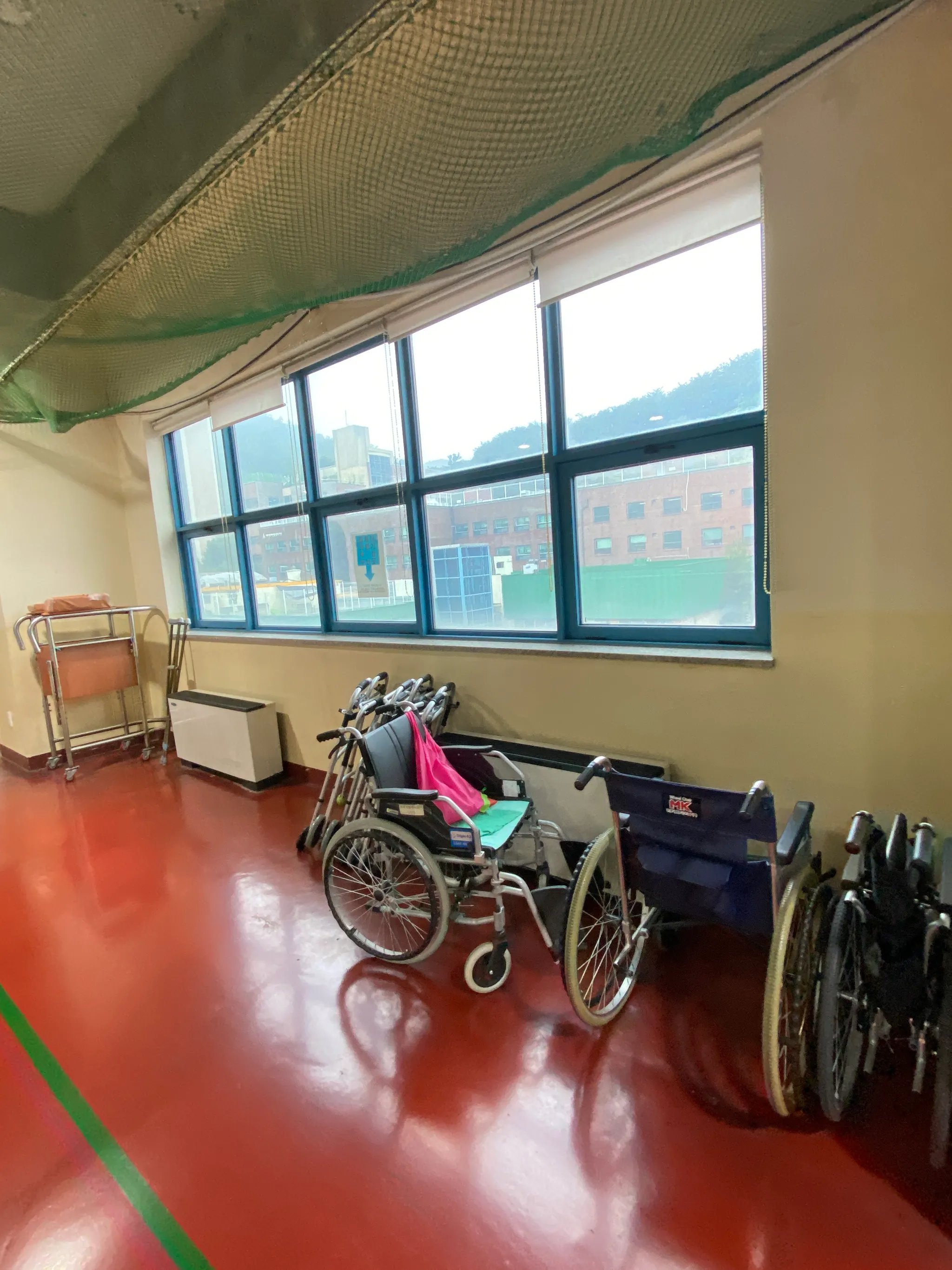 이곳이 재활센터로 재활의 목적으로 운동하는 분들도 계셔서 여기저기 휠체어나 목발 그리고 보행보조기구가 눈에 많이 들어온다.