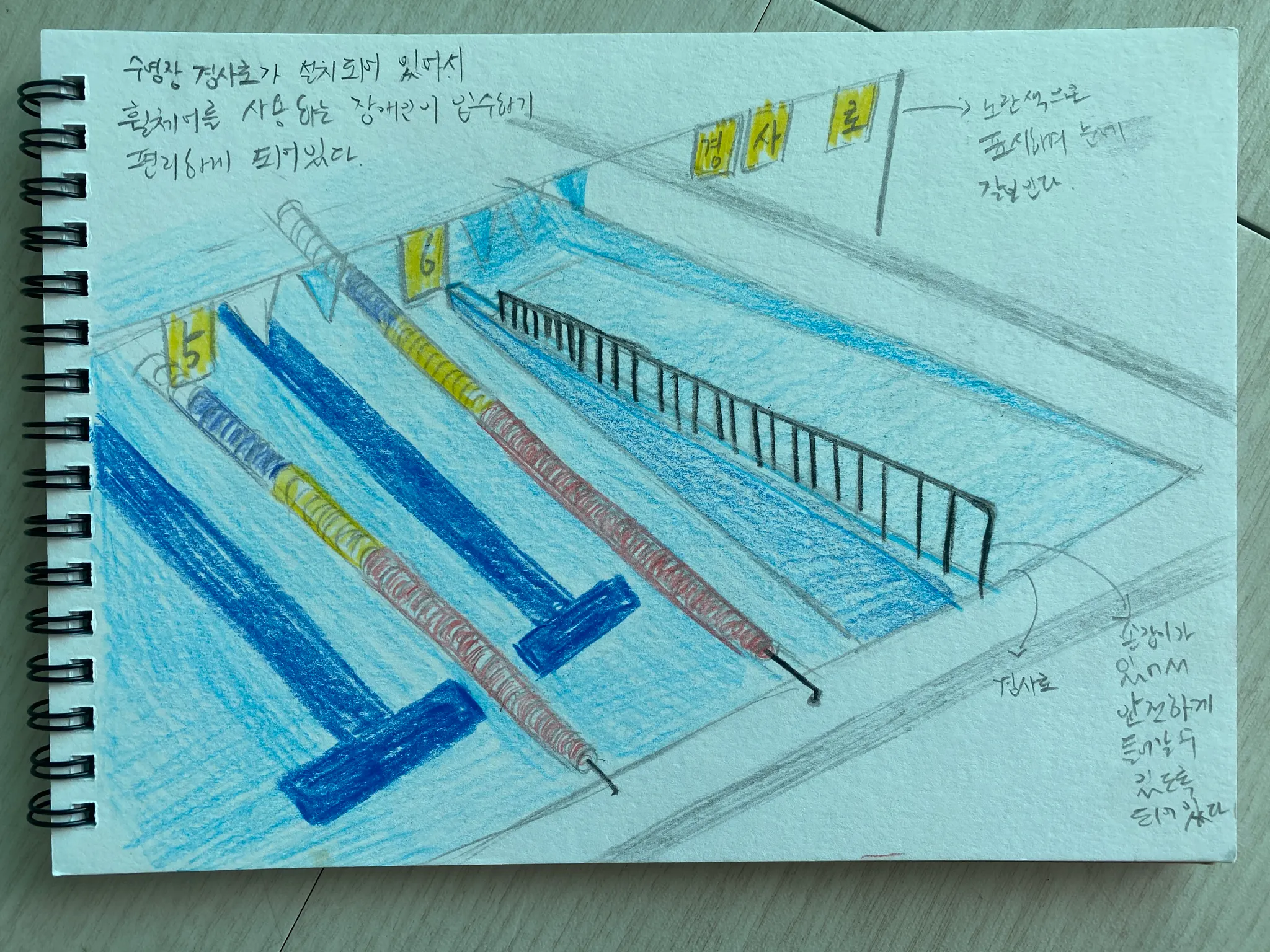 *수영은 장애인, 비장애인 시간대를 달리해서 운영하고 있으며, 재활 목적 운동 프로그램으로 이용되고 있어서 다양한 프로그램이 준비되어 있고(재활수영,왓슈등등) 초등~노인까지 모두 이용할 수 있도록 프로그램을 나누어 관리하고 있었다.
