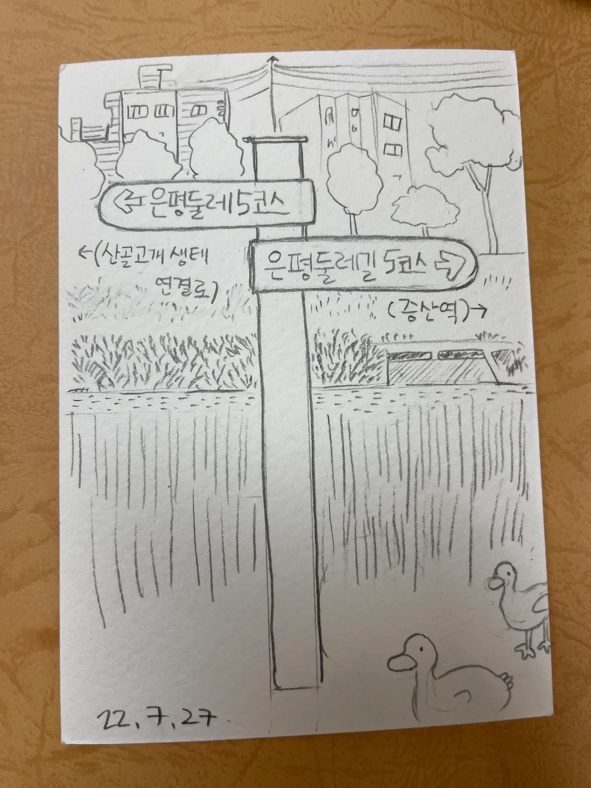 공동작업용 풍경 파트를 나누기 위해 촬영차 방문. 마크가 될만한 건물이 없다면 다른 하천들과 구분이 쉽지 않으므로 각각 은평구 불광천을 끼고 있는 건물들이 들어가도록 그려봐야 할것 같음. 처음엔 기념비 세워진 구역을 할까 했으나,, 최종적으로는 불광천 미디어 아트센터 쪽 부분을 맡아서 그리기로 함.