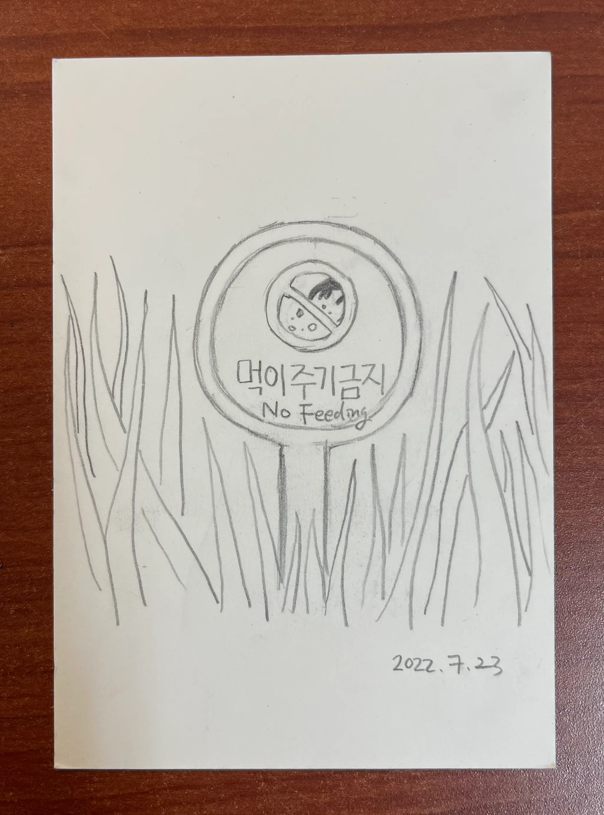 표시룰 보지는 못한 것 같은데. 사람들이 먹이를 엄청 줬나보다 추측해봄. 여름이라 풀이 무성함.