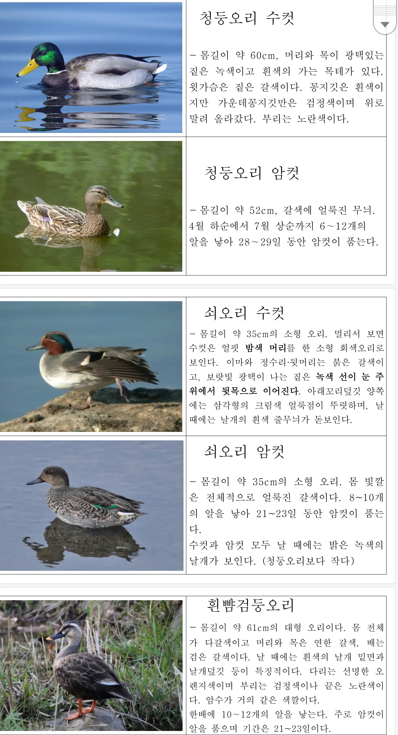 오리는 종간 교배로 섞인 것도 있다는 것이 생태체험관 관리자님 말씀.