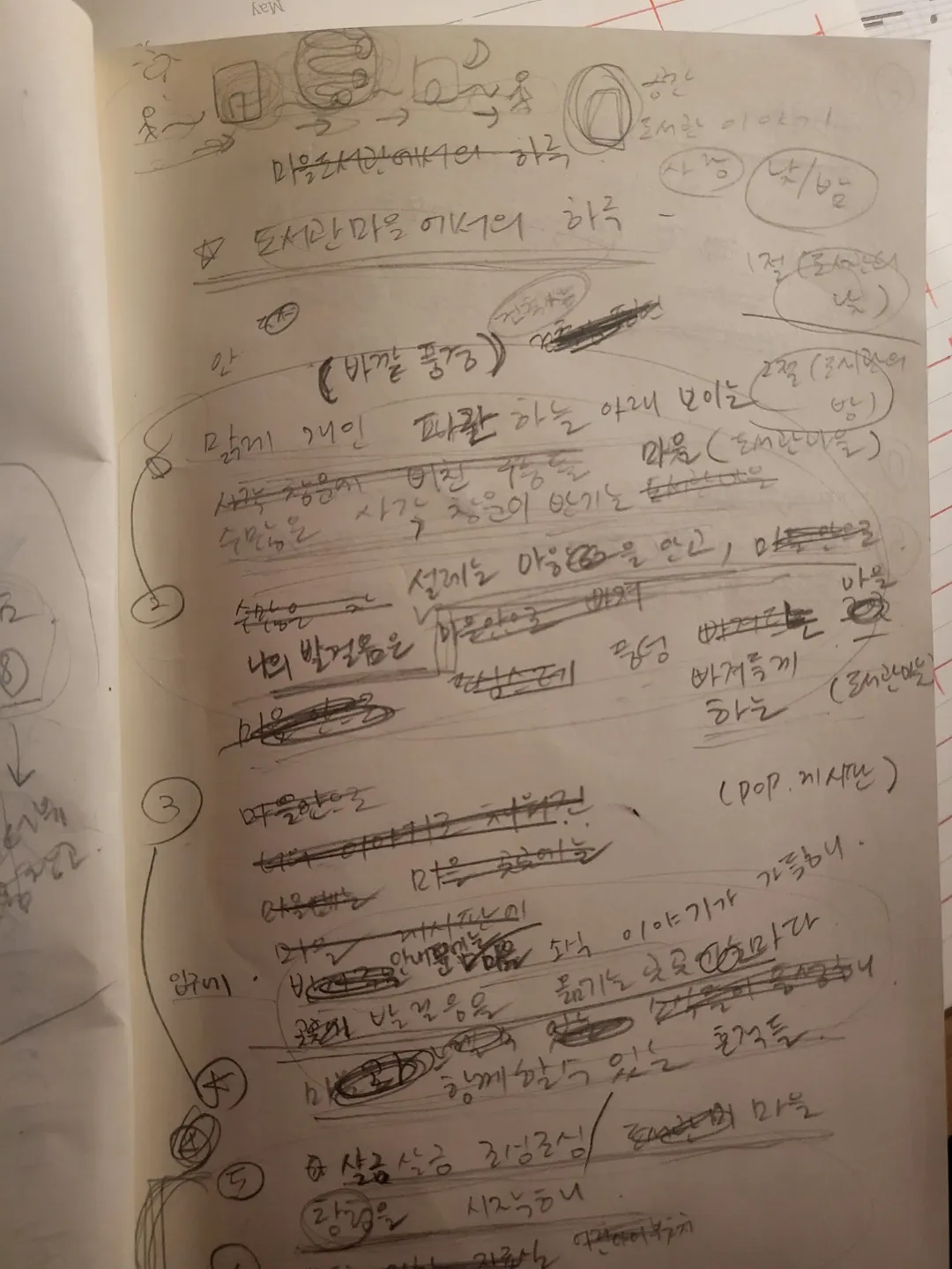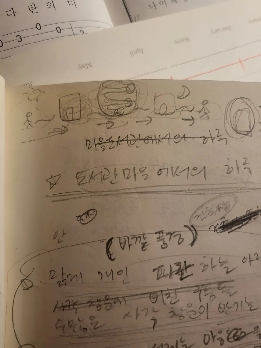 작사 작업을 진행하기전에 컨셉을 잡기 위해 손그림으로 스케치를 하였다.