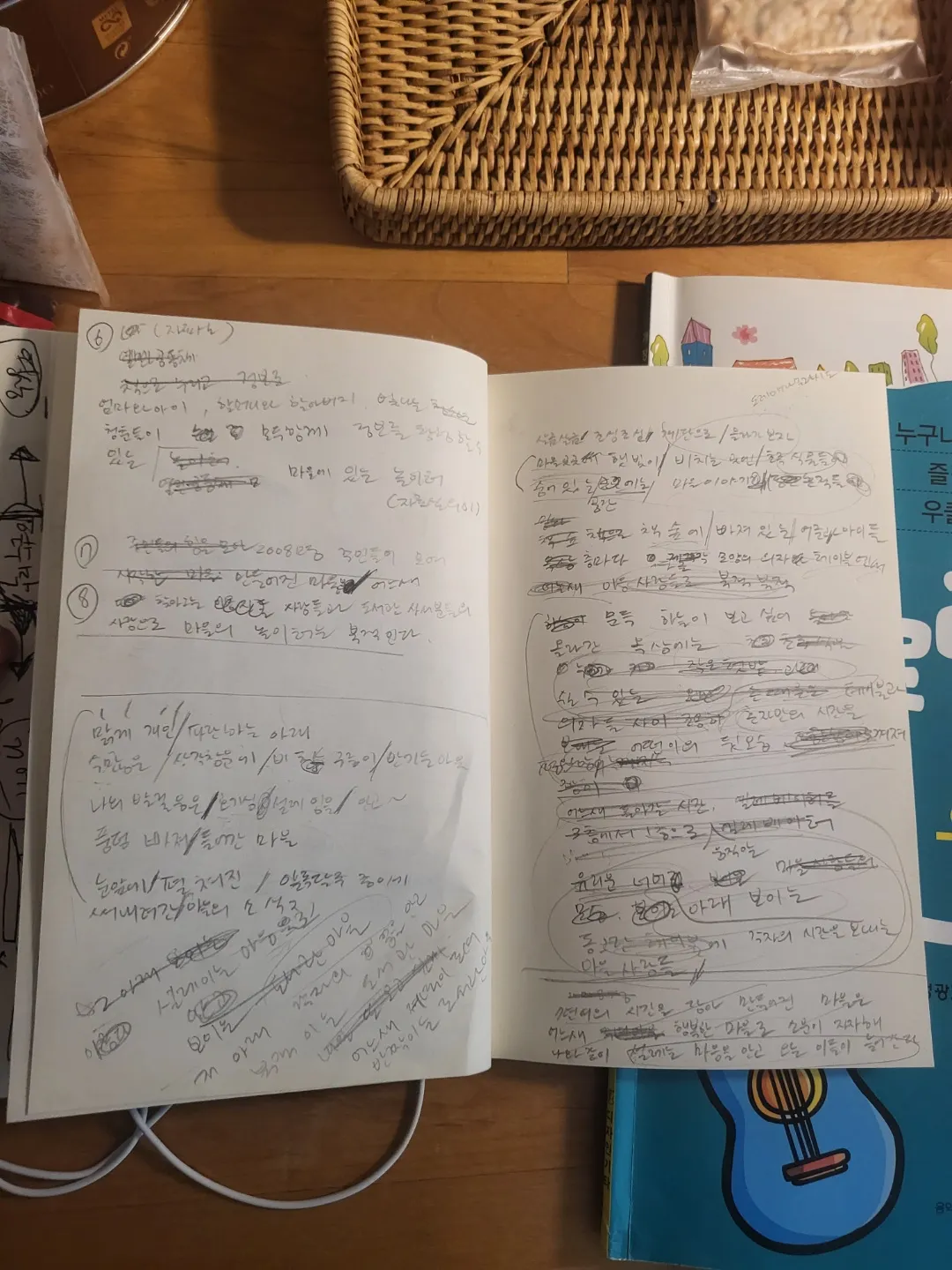 초중고 음악수업이 있었지만, 작곡 작업이 어려움을 겪고 있어. 레이린님에게 도움을 요청드렸다. 알기쉽게 설명해주시고, 작업하기 쉽도록 예시와 가사를 작성할 수 있는 노트를 주시고, 편안하게 작업을 해볼 수 있게 지도해 주셨다. 작곡은 노래를 불러가며, 레이린님이 피아노로 음을 알려주셔서 작곡 작업까지 마무리 지을 수 있었다. 1차 작사부터 작곡작업까지 대략 5시간 정도 소요 되었다.