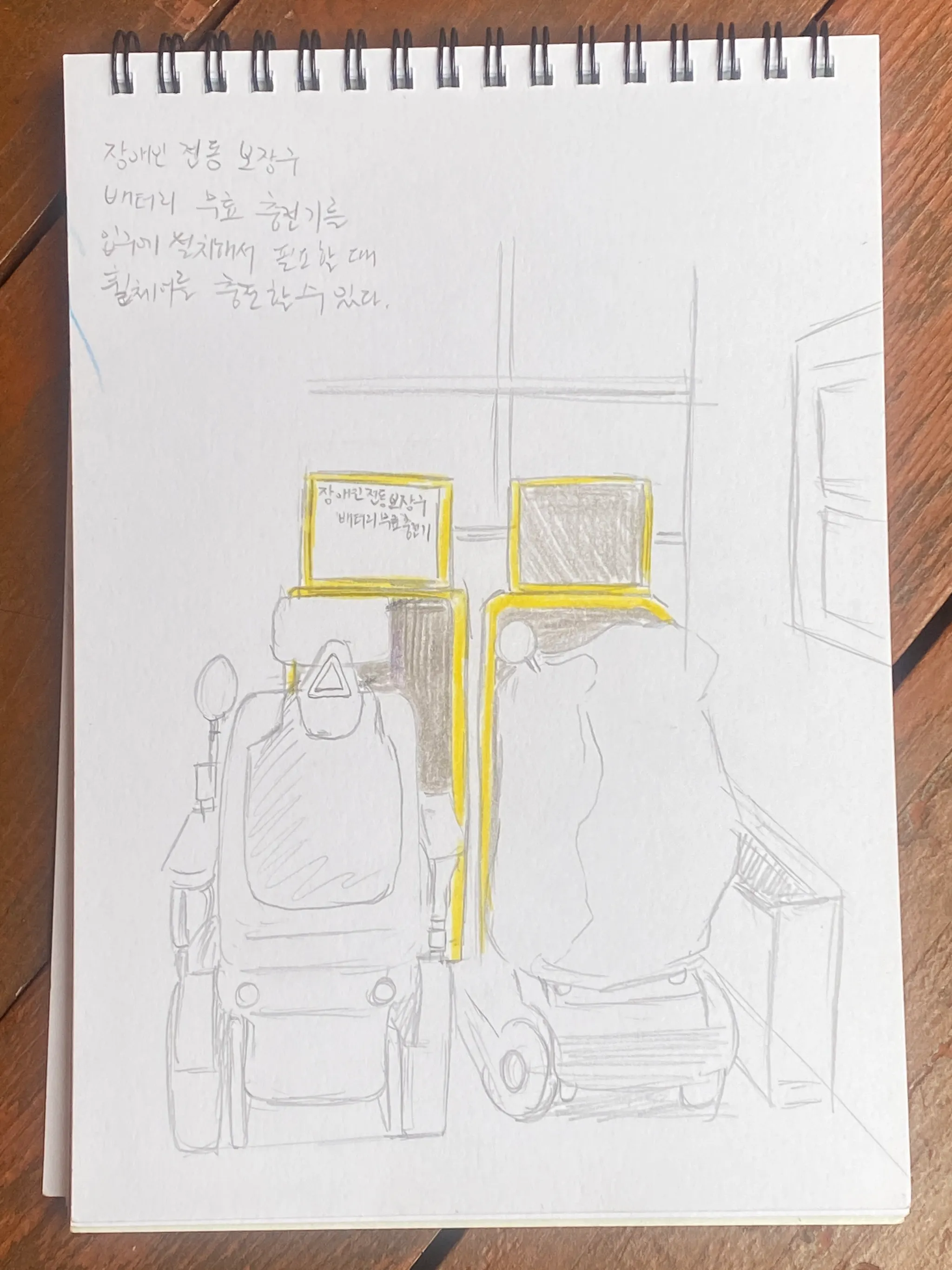 1층에 장애인 전동 보장구 충천기기가 있어서 휠체어를 충전할 수 있다.