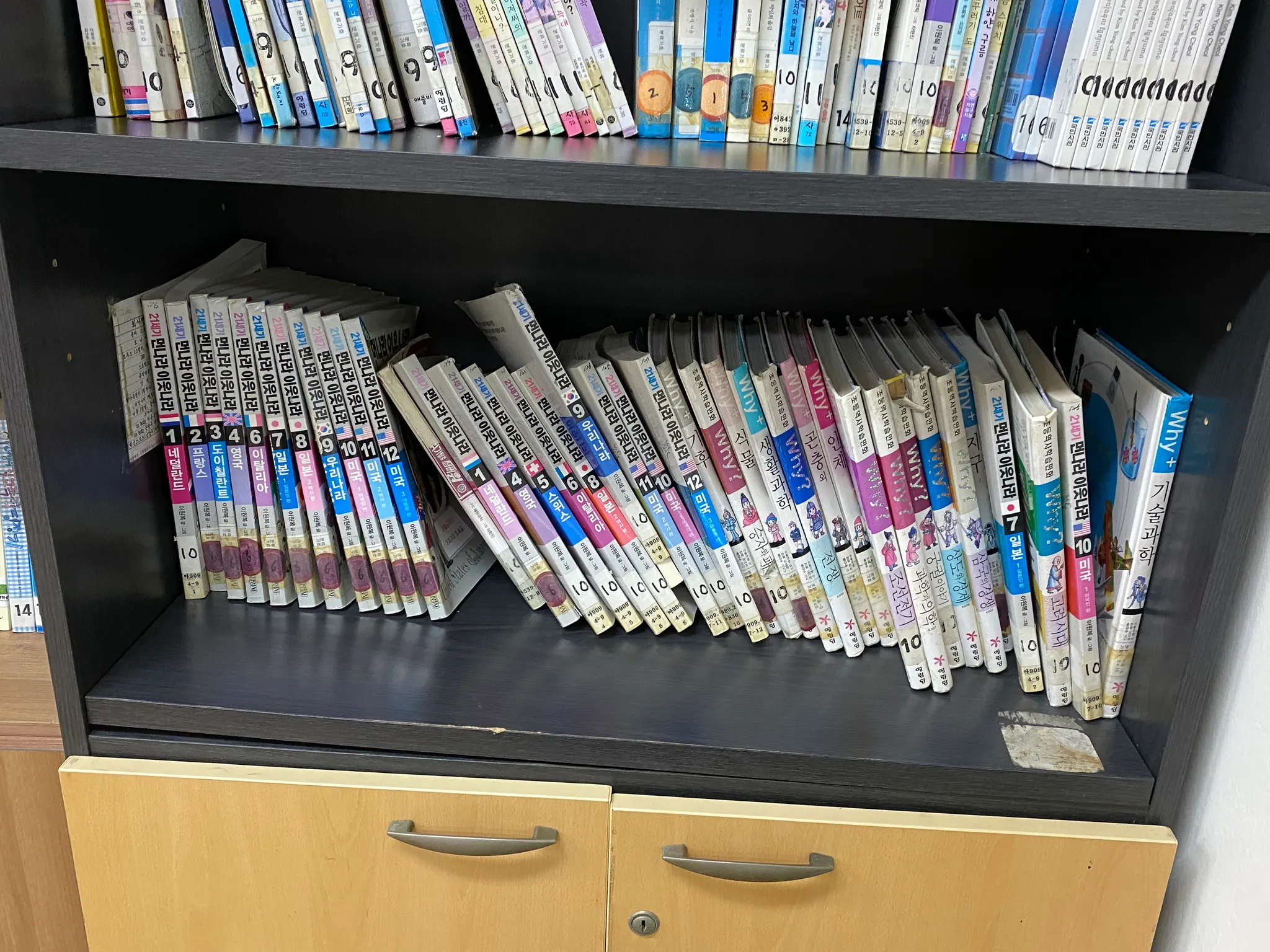 3층 수영장은 어린이들도 이용하는 수업도 마련 되어 있어서 엄미들이 아이들 수업이 진행될 동안 수영장 안을 볼 수 있는 공간이 따로 마련되어 있는데 그 공간에는 아이들이 기다리며 지루하지 않도록 볼 수 있는 책이 많이 꽂혀있었다. (그림기록 예정)