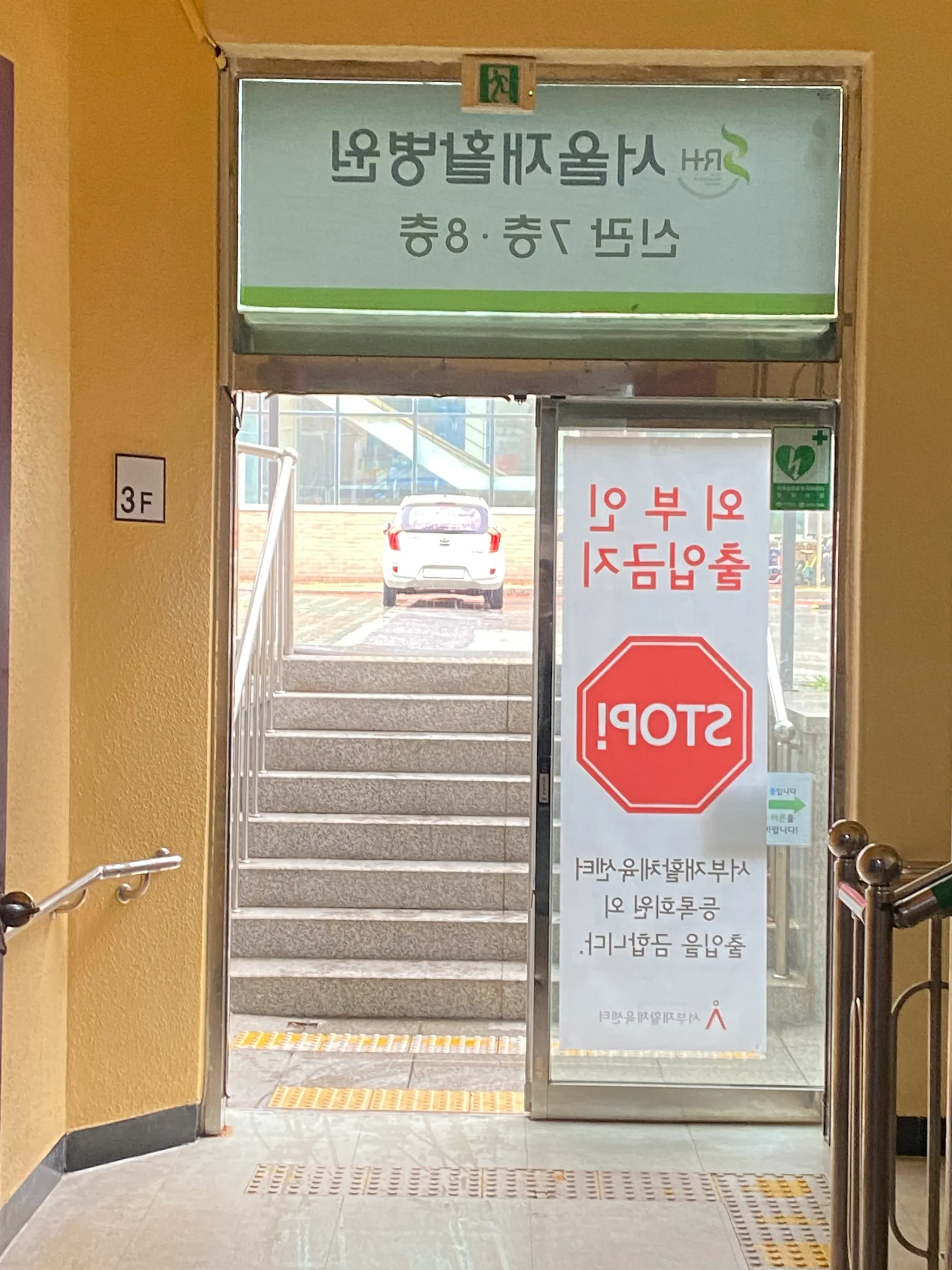 엘레베이터 문 앞에도 손잡이가 설치 되어 있다. (그림기록 예정)