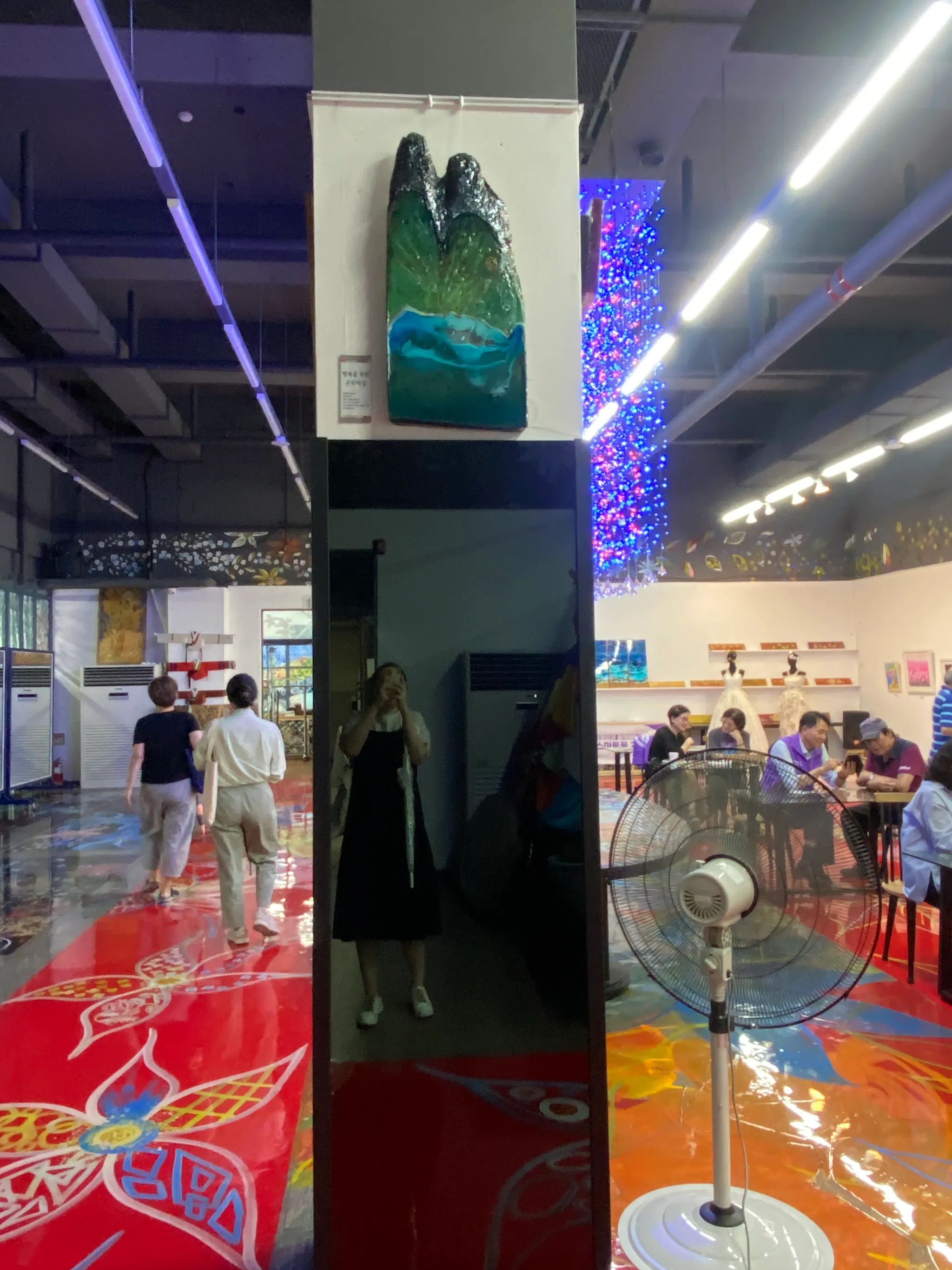 1층에 마련된 넓은 공간에는 바리스타 교육, 키오스크 수업, 아크릴화 등등 문화 수업을 하는 곳으로 사용되어 지는데 전시장으로도 횔용 하고 있어서 주민들 작품을 전시하기도 한다.