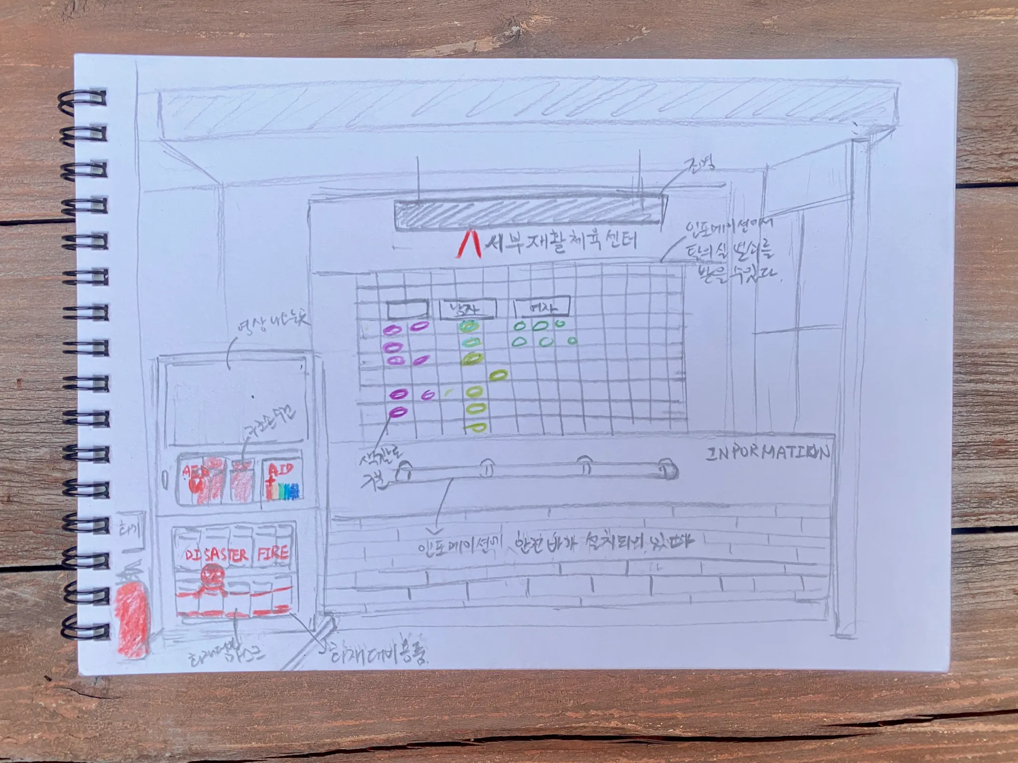 6층에서 내려다보니 인근에 주민들이 자주 이용하는 시설들이 어느 방향으로 가야하는지 표시를 해둔 도로가 보였다. 이곳이 사실 장애인들과 노인들이 많이 이용하는 곳임에도 도로 정비가 어려워 길에서 걸어다닐 때 위험한 동네라고 한다. 여러모로 방안을 모색해봤지만 뚜렷한 답을 찾지 못했다고 한다.