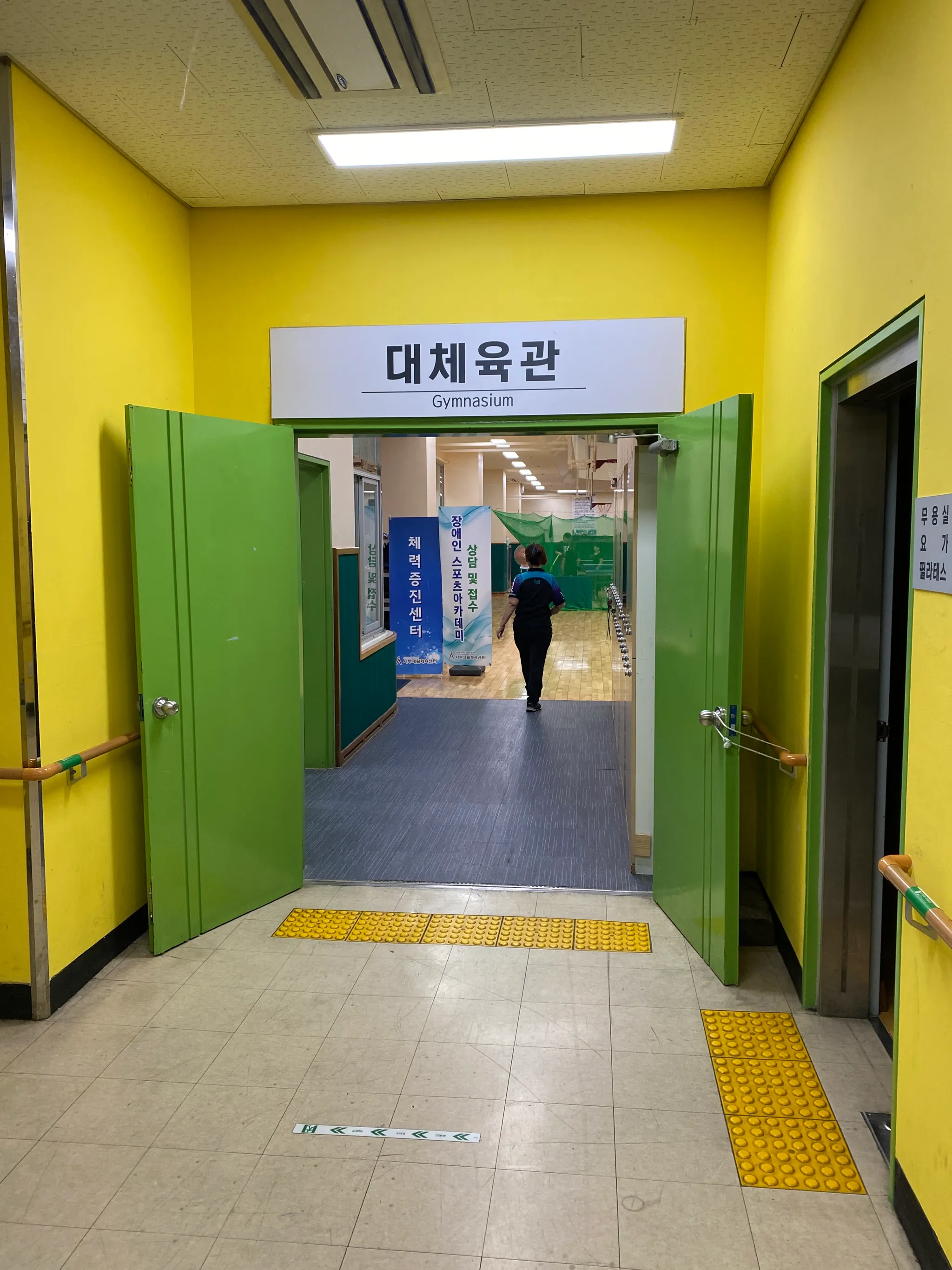 5층은 체육관,6층은 트렉장과 헬스장으로 이루어져 있는데 헬스장 창가는 현재 아파트 공사장이 보이고 있어서 아쉬웠다.