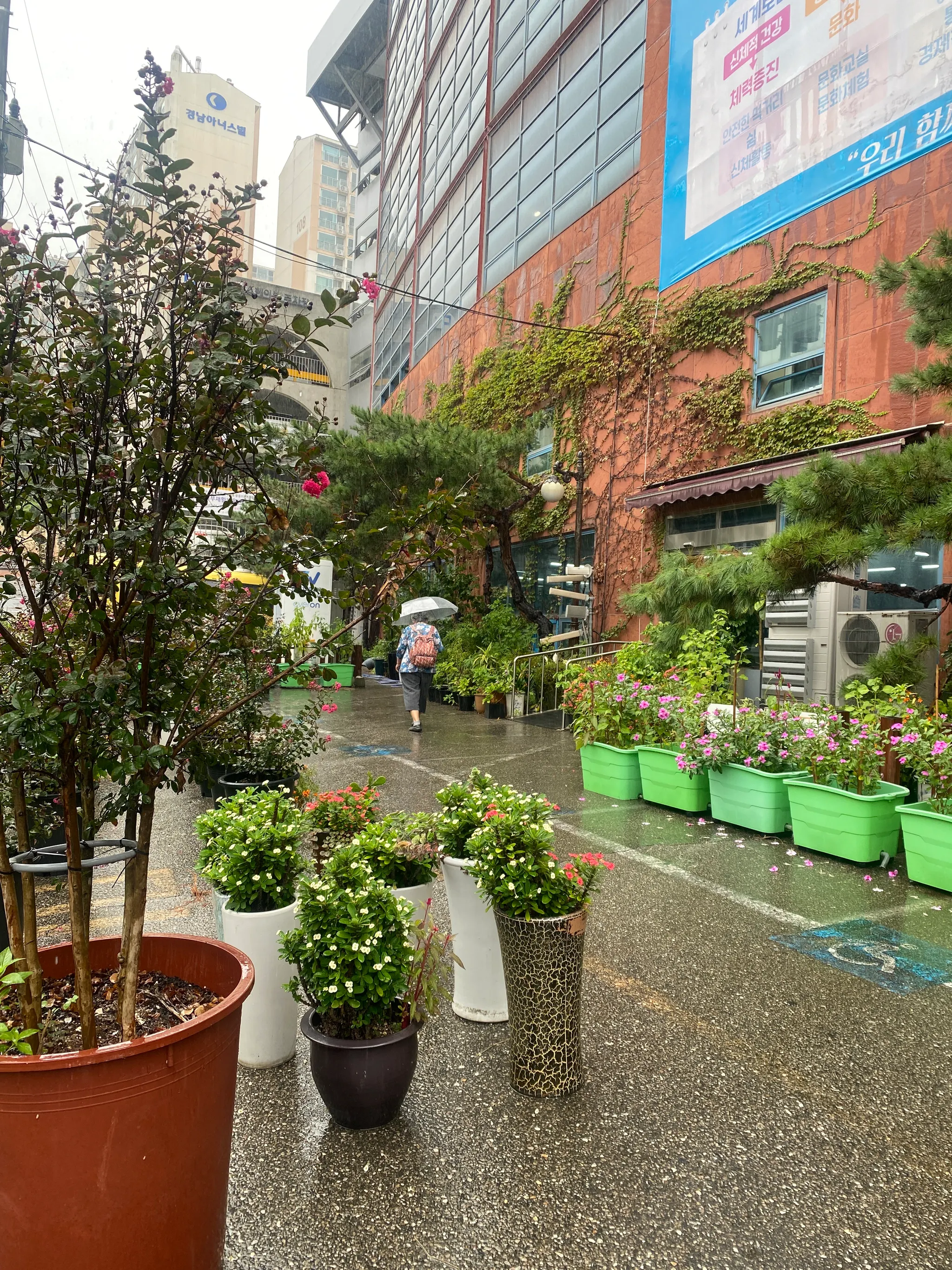 카페는 건물 외부에서도 들어갈 수 있도록 문이 설치 되어 있는데 문 바깥 쪽에는 화분이 참 많이 놓여있었다. 창으로 바라보는 경관에도 신경을 쓴 것 같다.