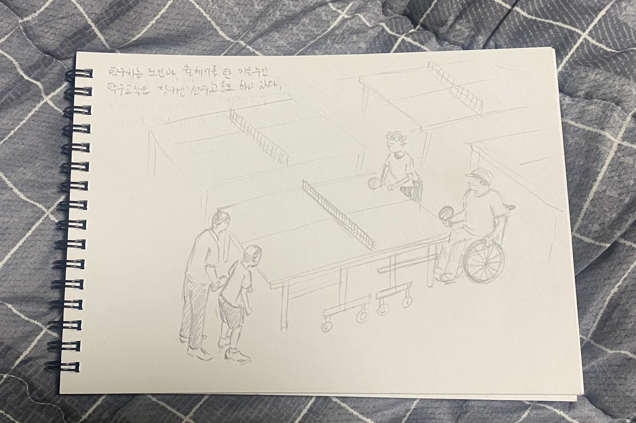 서부재활 체육센터에서는 탁구교실을 운영하는데 장애인은 선수로도 활동할 수 있다. 휠체어를 탄 분과 나이가 좀 있는 분들이 함께 탁구를 치는 모습이 보기 좋았다.