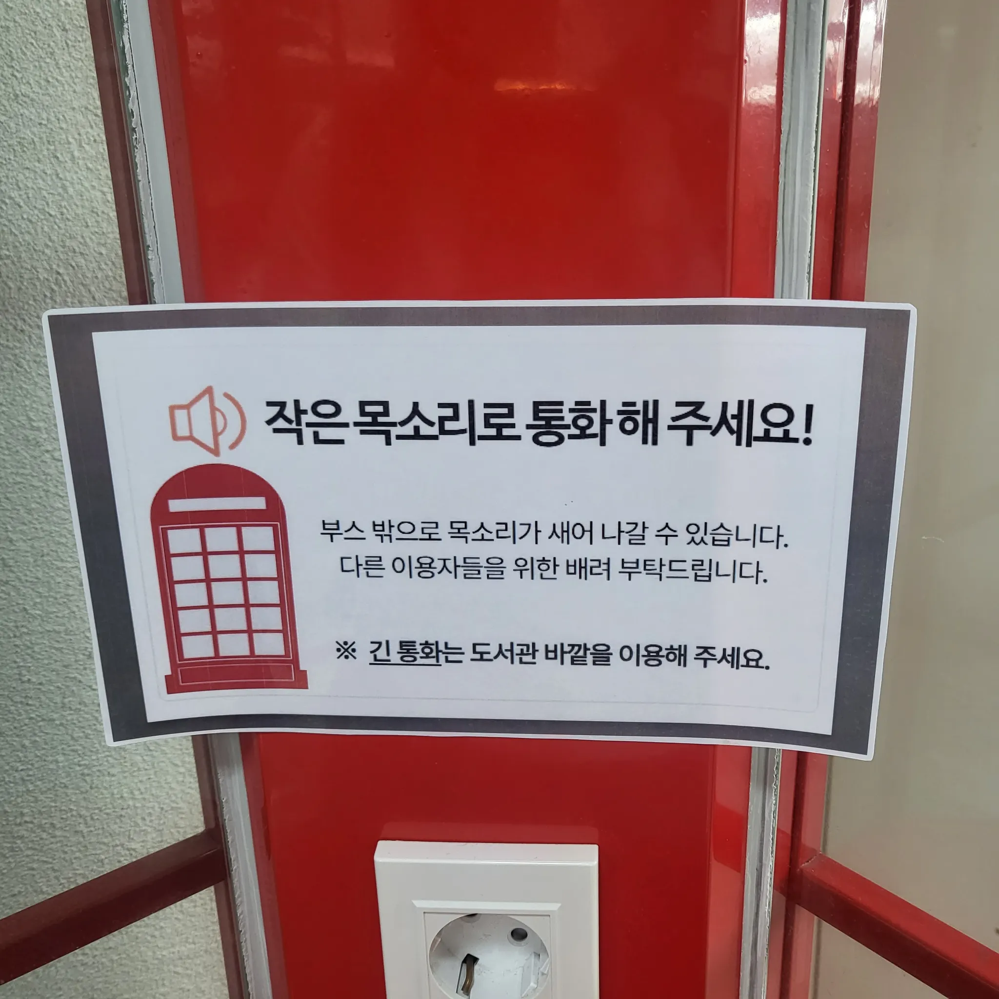 조용한 도서관에서 개인 통화를 하기위한 공간. 재밌는 점은 왜인지 모르게 이 안에 들어가면 다른 소리가 더 선명하게 들린다.