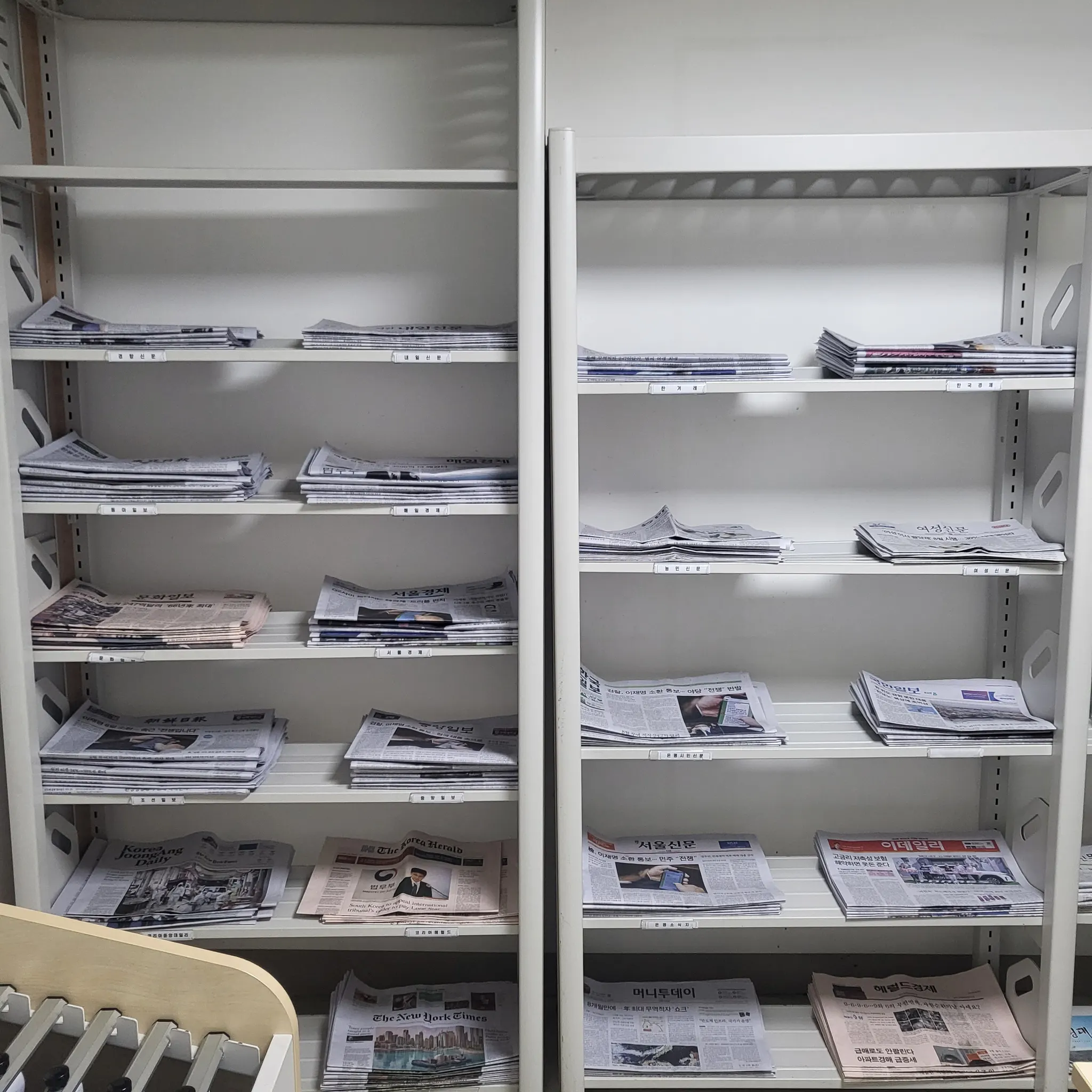 어르신 두분이 신문을 보고 계셨던 정기간행물 코너. 이곳과 멀티미디어실에는 어르신들이 많이 계셨다.