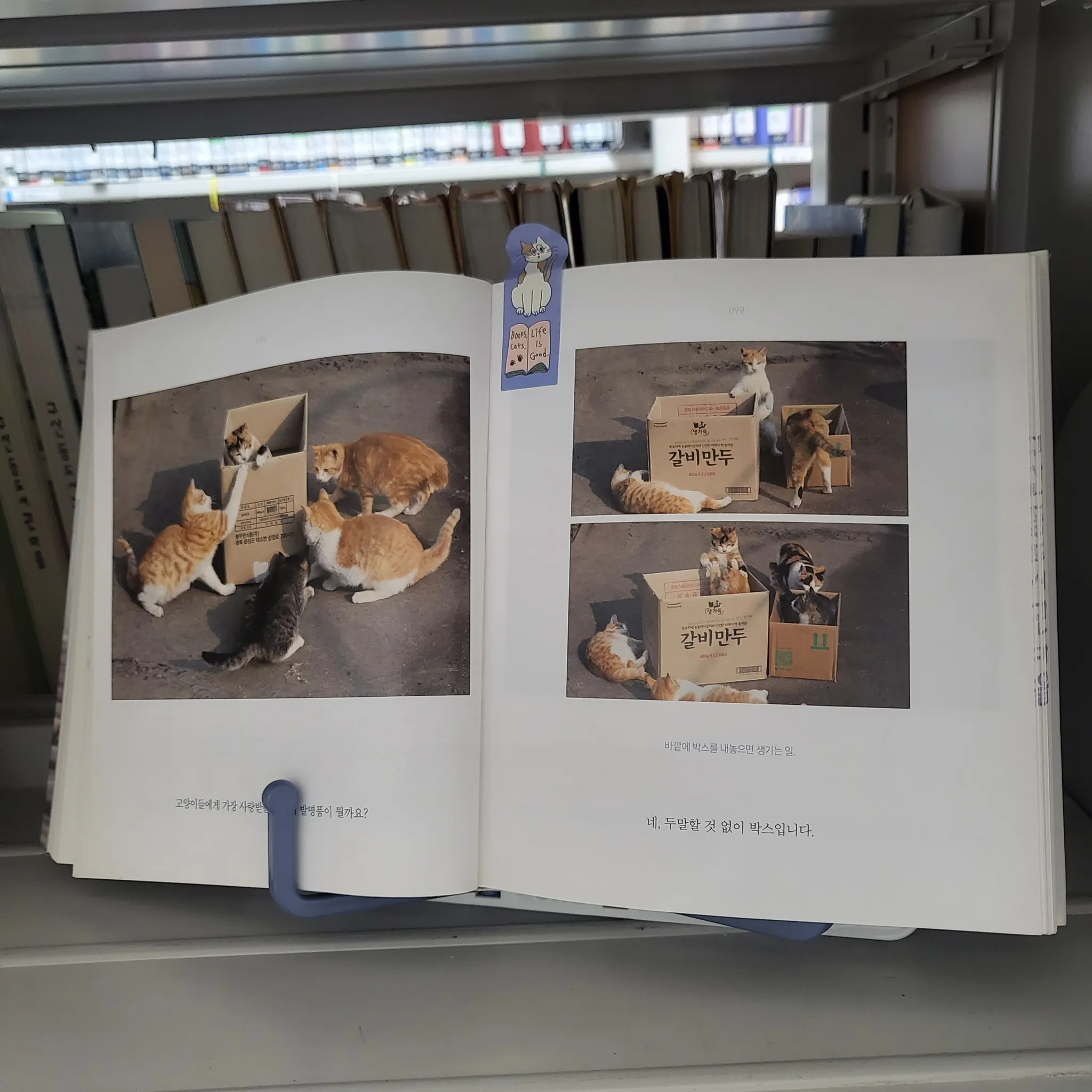 골목같은 도서관 서가 사이에서 마주 친 고양이들.