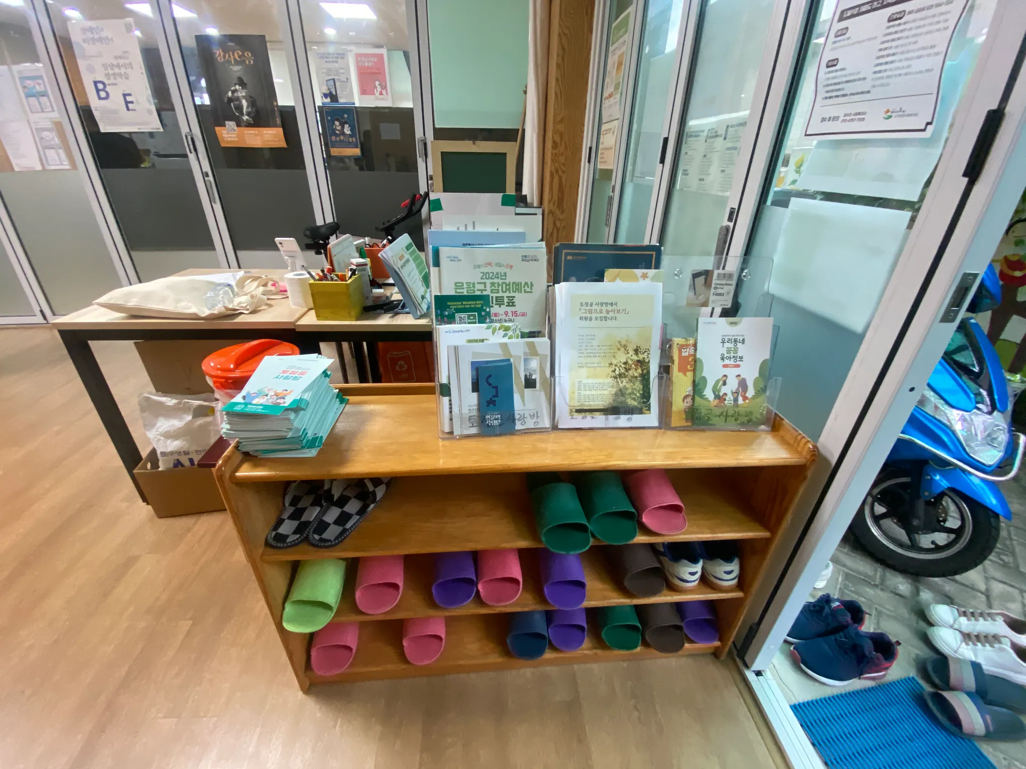 이 공간에는 아이들이 심심하지 않도록 어린이용 책이 많이 있다.