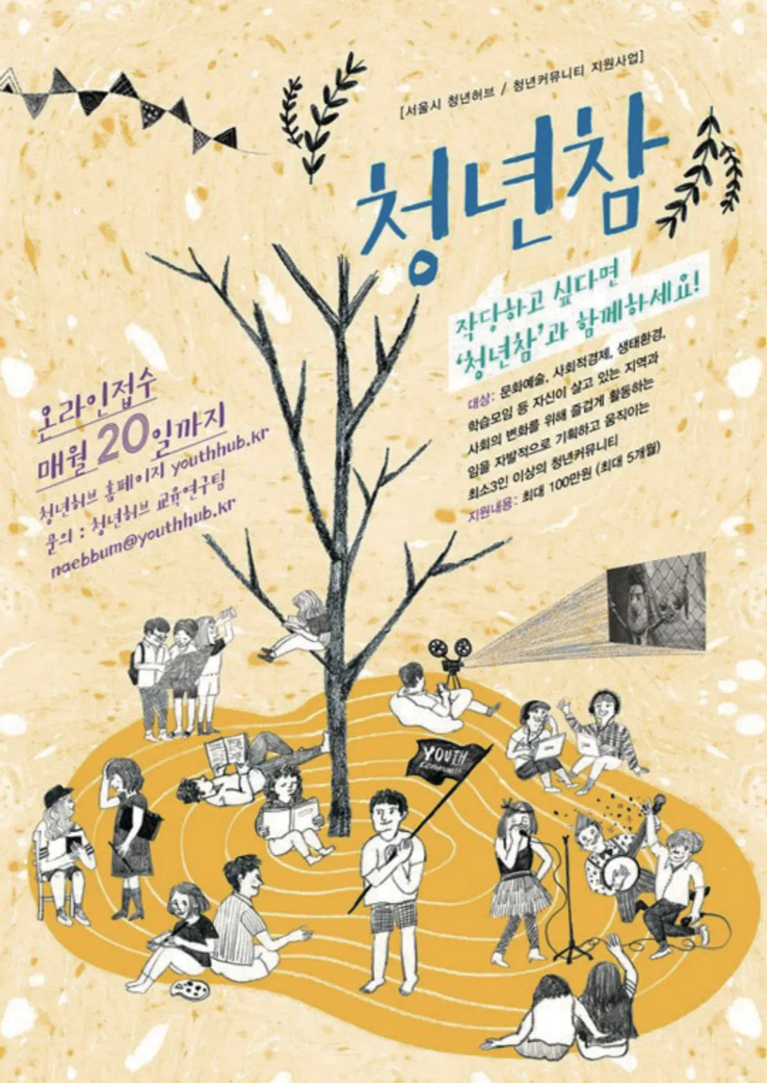저도 2013년에 '청년참' 지원을 받았거든요. 청년허브가 처음 만들어지면서 시작했던 청년 커뮤니티 지원사업이에요. 청년 3명만 모여서 놀아도 되고 수다를 떨어도 돼요. 일단 모여서 뭔가 작당을 모의하면 그걸로 100만 원의 지원금을 주는 사업이었어요. 저는 뜨개질 하고 재봉틀로 만들고 이런 걸로도 지원을 받을 수 있다니 혁신적이라고 생각했어요. 그냥 돈 주는 거 아니냐고 공격도 많이 받았던 사업이라 그걸 다 헤치고 시행한 것도 참 대단했죠.