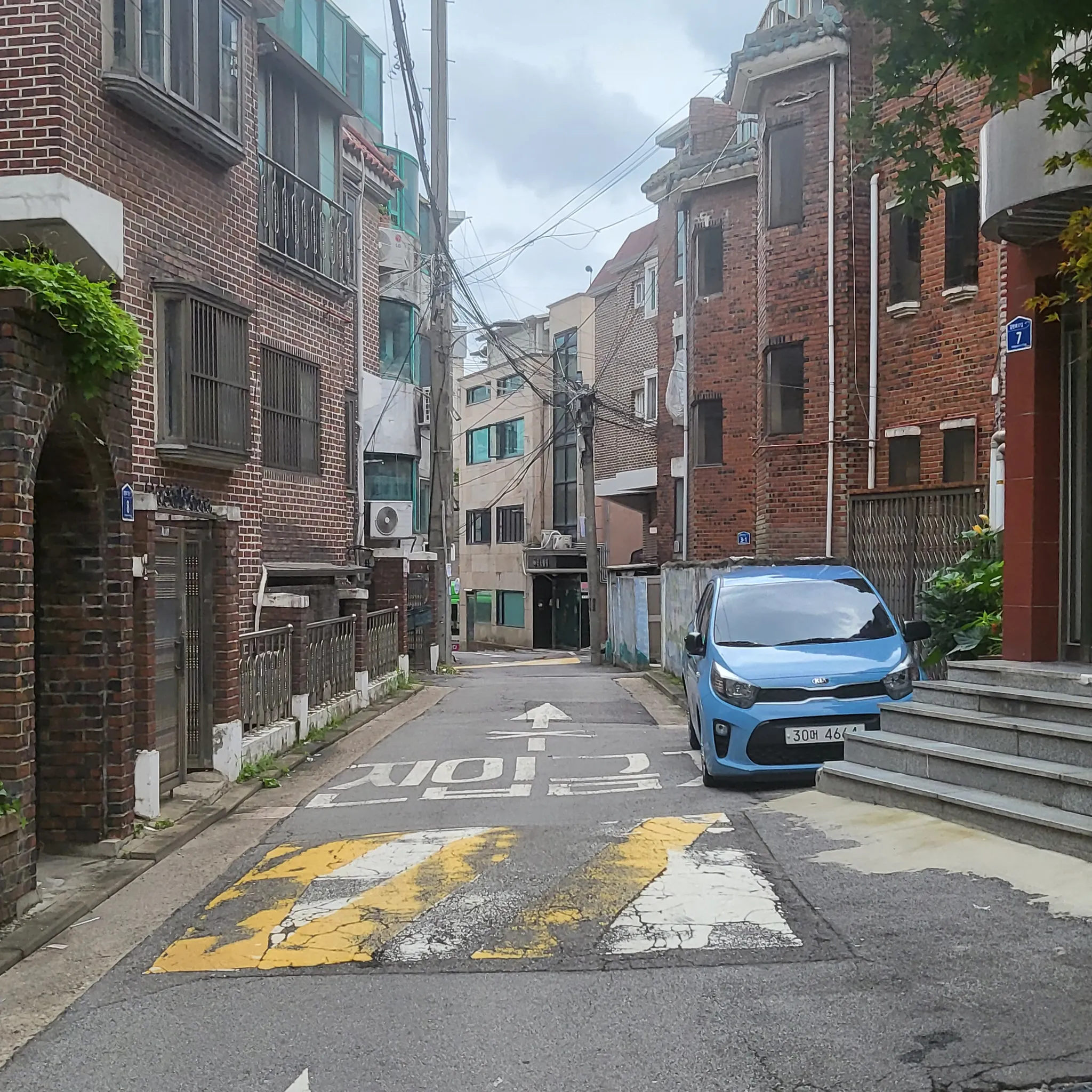 좁은 골목이 이어지는 지라 주차할 공간이 많지 않다. 그 와중에 주차 공간을 늘 막아 놓는 것이 아니라 필요한 만큼 차지하고 이 공간이 필요할 누군가에게 일부 양보한다.