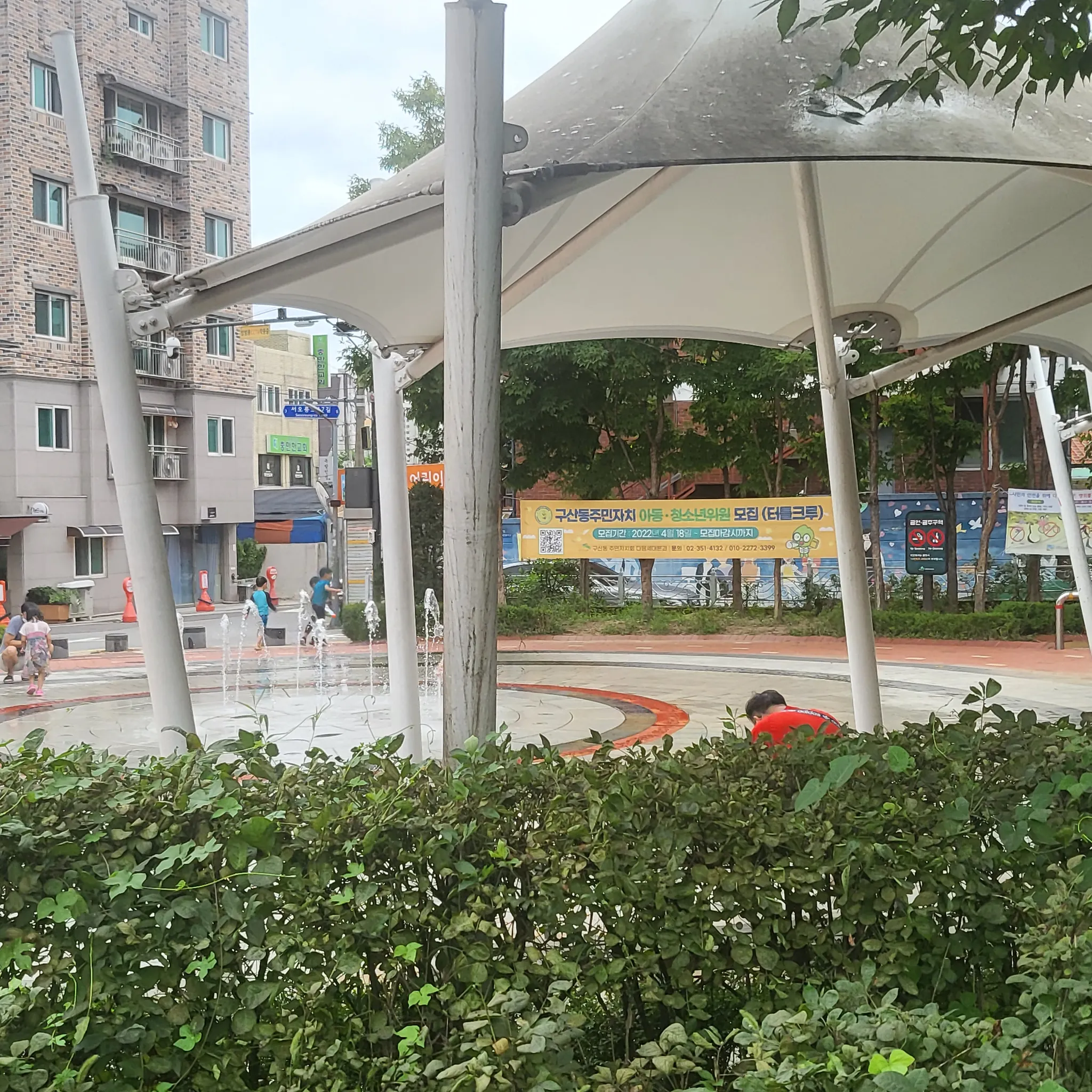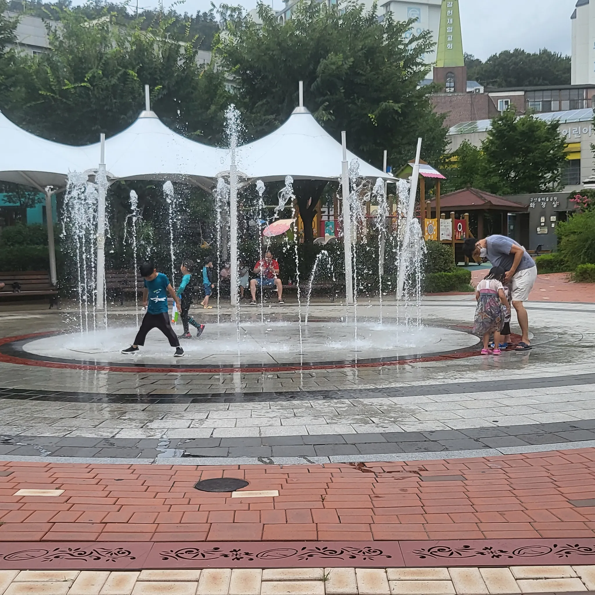 날씨도 흐린데다 공휴일이라 인적이 드물었는데, 어느틈엔가 공원분수가 아이들을 위한 워터파크가 되었다.