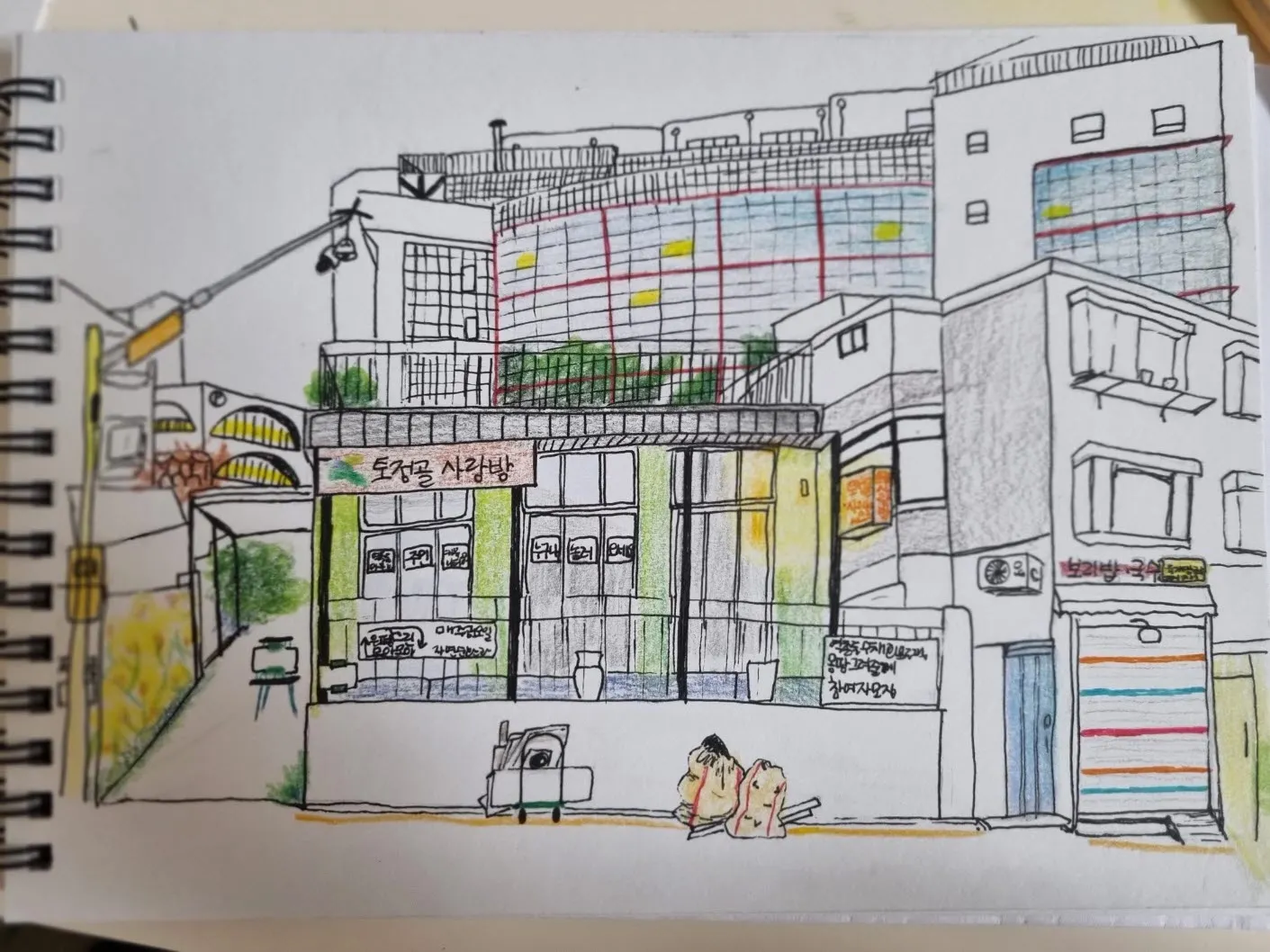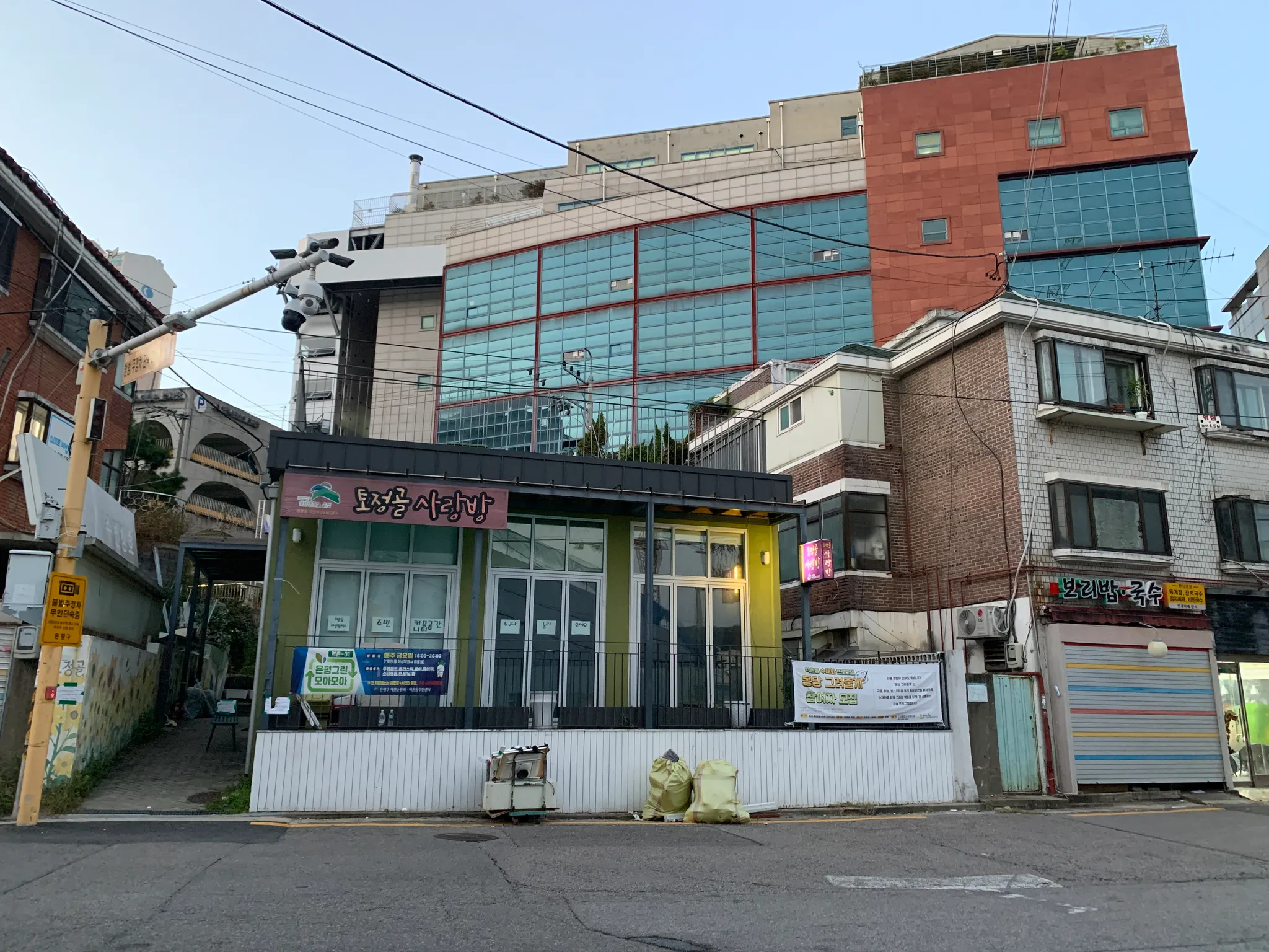 내부 인테리어를 진행하고 있다던 토정골 사랑방은 외부도 정리가 많이 된 모습니다. 담장을 감싸던 식물들도 없어지고 옥상에 있던 박스들도 많이 사라진 모습이다. 그래도 저녁이 되면 작은 간판에 불을 밝히는 것은 여전한 것 같다.