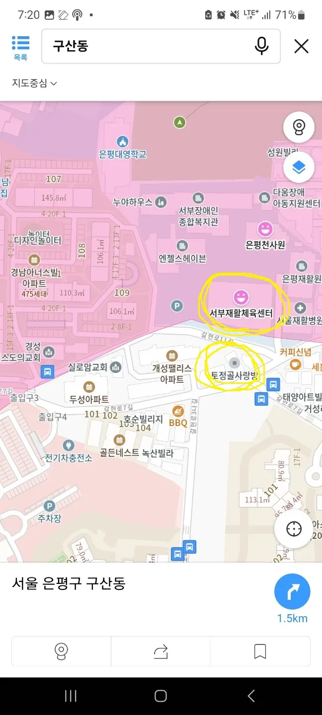 메모 : 토정골 사랑방이랑 서부재활체육센터는 나란히 있지만 그 사이에 있는 도로를 사이로 역촌동과 구산동으로 나뉘어진다. 실생활에서는 전혀 나뉘어진 것을 모를 것 같지만 나란히 있다.