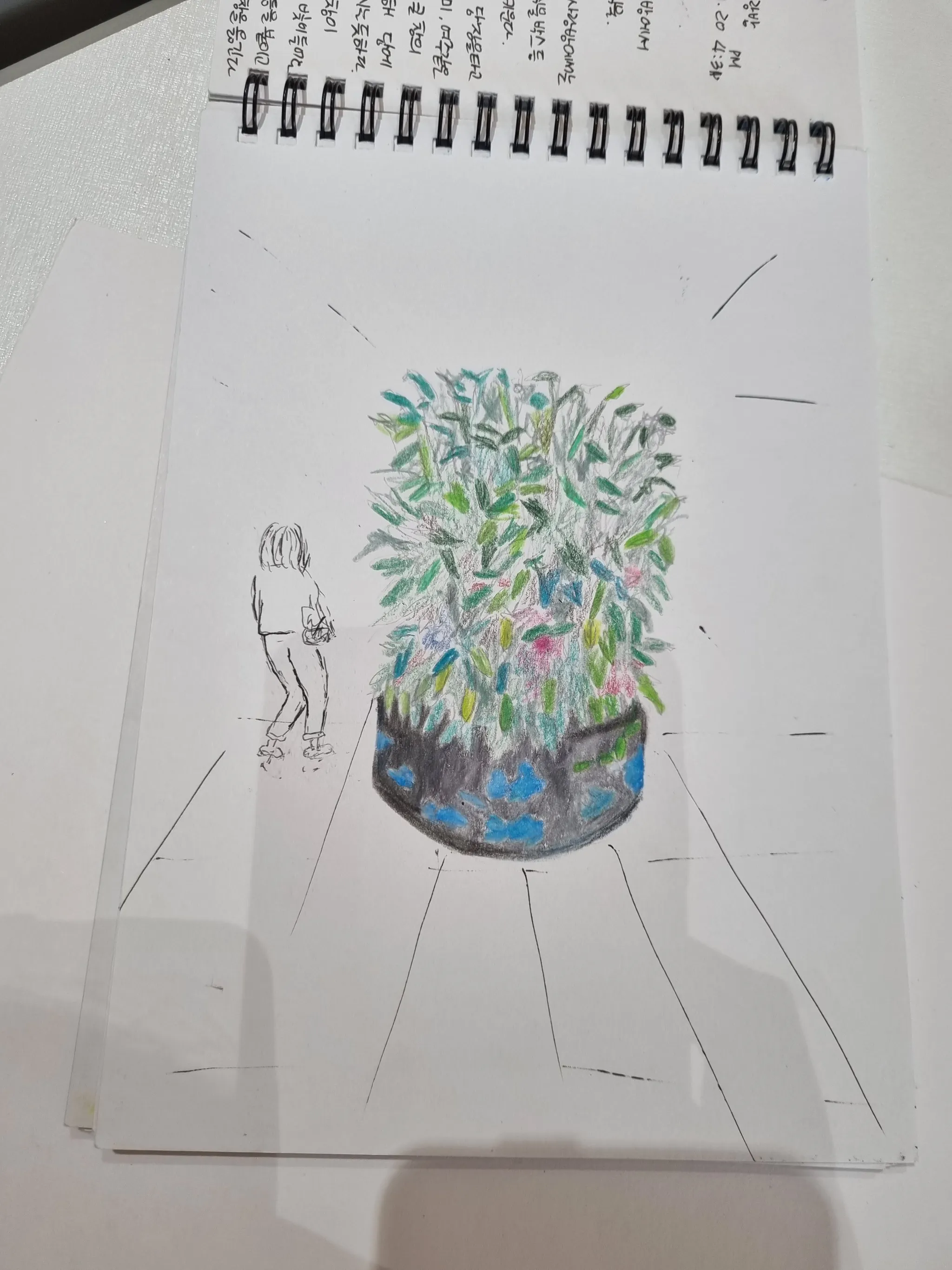 메모 : 서부재활체육센터 1층에 들어서자마자 싱싱함과 생동감이 느껴진다. 체육센터에 있을 것 같지 않은 식물 기둥이 센터에 생명을 넣어준다. 기둥 하단부의 자개같은 것이 있는데 1층 로비 옆 큰 홀에서는 다양한 그림, 의상, 목공, 유화, 붓글씨, 자개 등 문화활동과 교육을 하는 것을 보면 활동하시는 누군가가 만드신 것 같다. 체육센터에서 문화예술활동이랑 교육들이 이루어지는 것이 신기하다. 큰 작품들도 많고 쉽게 접할 수 없는 문화들도 있다.